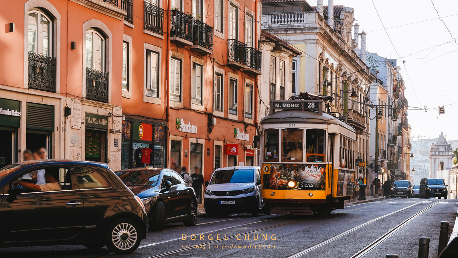 瓷砖画(Azulejo)是葡萄牙的一大特色,在澳门已有所领略,在里斯本更是见到了「原版」「完全体」——瓷砖画出现在各处,有具象的画作、也有抽象的图案装饰,大部分是蓝色、令人想到海洋,纪念品商店都在卖各种各样的瓷砖冰箱贴。在路面行驶的黄色电车也是一大标志性风景,虽然我们没坐。
