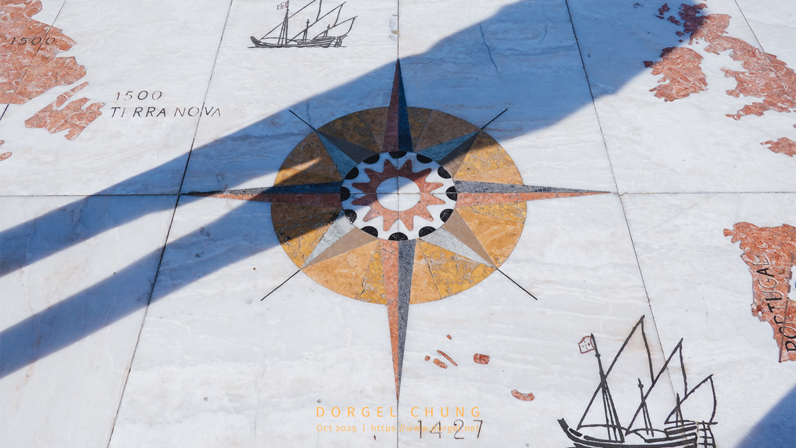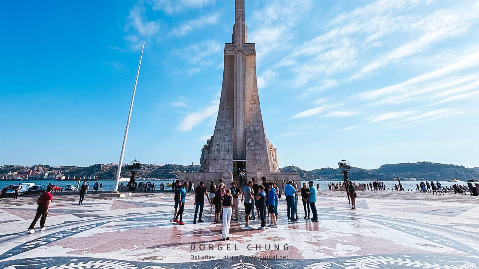 发现者纪念碑,前面地上是个巨大罗盘和世界地图,在纪念碑楼上可以俯瞰全貌,但门票太贵没上